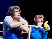 Ein Mädchen kommt mit seinem Vater in einen Park. Dort sitzt ein Mann auf einer Bank, der mit einem Stöckchen auf den Boden klopft. Das Mädchen fragt ihn, wer er ist. Der Mann sagt nichts, er macht nur Geräusche. Das Mädchen beobachtet die Vögel und verscheucht sie. Neben verschiedenen Spielgeräten steht auch ein Karussell im Park. Ein Schild mit dem Hinweis „Defekt" ist daran befestigt. Der Vater ist Handwerker und beginnt das Karussell zu reparieren. Das Mädchen fragt den Vater, ob er den Mann auf der Bank kennt. Der Vater sagt, dass ihn alle Daedalus nennen, weil sein Sohn bei einem Unfall mit einem Fluggerät verunglückt sein soll. Wer ist Daedalus? Der Vater beginnt die Geschichte von Daedalus und Ikarus zu erzählen... Immer mehr steigen das Mädchen (die Akrobatin, Tänzerin und Schauspielerin Pamina Milewska), der Mann auf der Bank (der Musiker Robert Kainar) und der Vater (Stefan Ried) in die Geschichte von Daedalus und Ikarus ein, die Geschichte beginnt lebendig zu werden. Das Karussell verwandelt sich in ein Labyrinth, in steile Felsklippen, in unwegsame Berge... Verirrung im Labyrinth und Ausweglosigkeit, das Erkennen, dass der Vater nicht „allmächtig" ist und den Weg auch nicht kennt. Die rettende Idee, sich fliegend aus dem Labyrinth zu befreien... Eine Geschichte von Vater und Sohn, von Irrwegen und Zusammenfinden, von Ausweglosigkeit und Befreiung, von Übermut und „auf die Nase Fallen", der Traum vom Fliegen und Abstürzen... und Aufgefangen werden. Die Geschichte von Daedalus und Ikarus wird mit viel Akrobatik und dem famosen Musiker Robert Kainar spielerisch auf die Bühne gebracht.